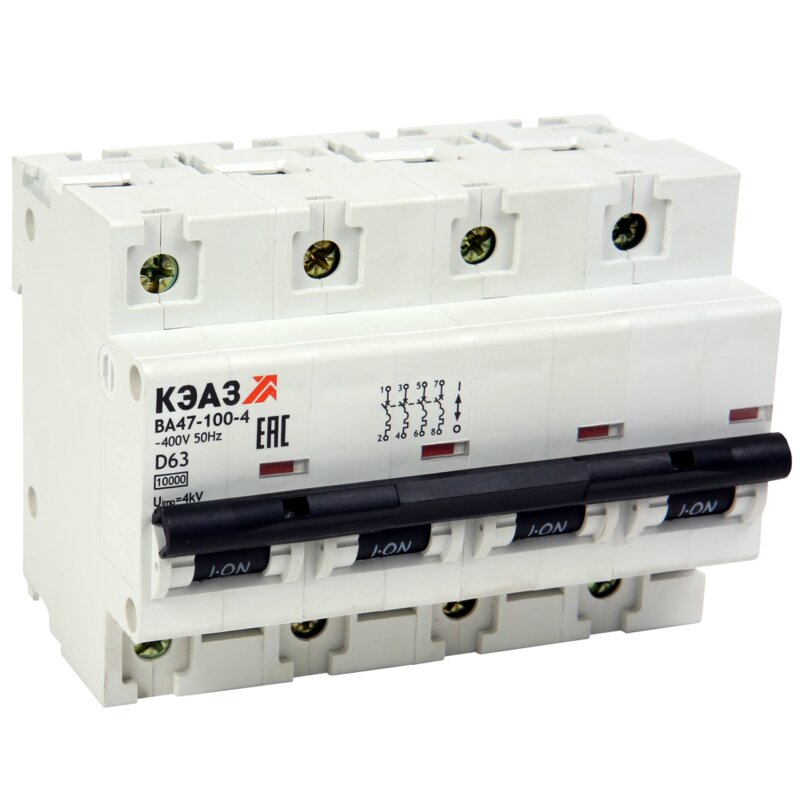 / Каталог / Низковольтное оборудование / Автоматические выключатели модульные / Автоматы - 100А / Выключатель автоматический модульный ВА47-100-4С100-УХЛ3-КЭАЗ