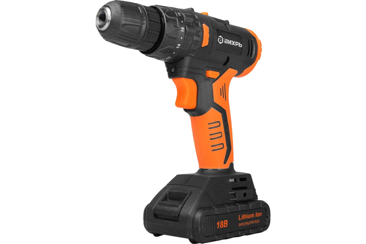 Дрель-шуруповерт аккумуляторная ДА-18Л-2КУ/Б (2,0 А/ч) (бесщеточный двигатель) Вихрь