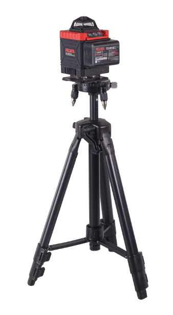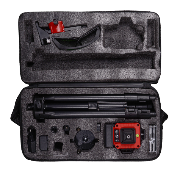 Устройство работает от аккумулятора, что обеспечивает мобильность и удобство использования без привязки к электросети. В комплект входит штатив, который обеспечивает устойчивое положение построителя и позволяет регулировать высоту. Устройство поставляется в удобном кейсе, что облегчает его хранение и транспортировку.