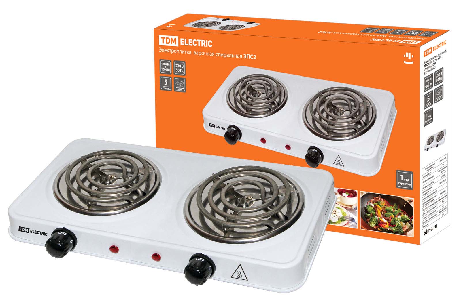 Электроплитка двухконф.ЭПС2 230 В, 2х1 кВт, спираль, белая, TDM