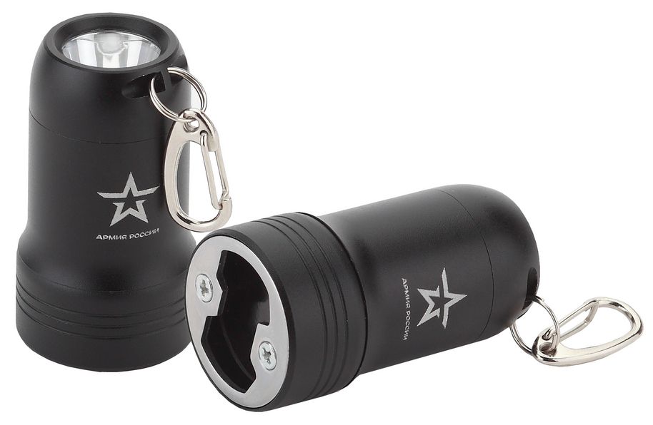 ЭРА Армия России Привал - компактный светодиодный фонарь-брелок со встроенной открывалкой. Световой луч отличной дальности - 28 метров. Качественный направленный свет за счёт использования сверхъярких современных светодиодов. Батарейки в комплекте.Простая и незаменимая вещь, если ты находишься вне дома. Выручит в любой ситуации, когда нужно что-то подсветить, и сделает путешествие комфортным. Изготовленный из анодированного алюминия корпус - это гарантия долговечности фонаря. Такое покрытие не боится коррозии и механических повреждений, на нём не остаётся царапин и сколов. Оно эстетично выглядит и приятно на ощупь. Мощный диод и специальный рефлектор позволяют этому карманному фонарику светить так же ярко и стабильно, как полноразмерный фонарь. Но главная изюминка - встроенная прямо в фонарь открывалка. Для запоминающихся привалов и посиделок с друзьями на свежем воздухе. В комплекте - источники питания 3хLR44, которые обеспечивают 25 часов непрерывной работы.