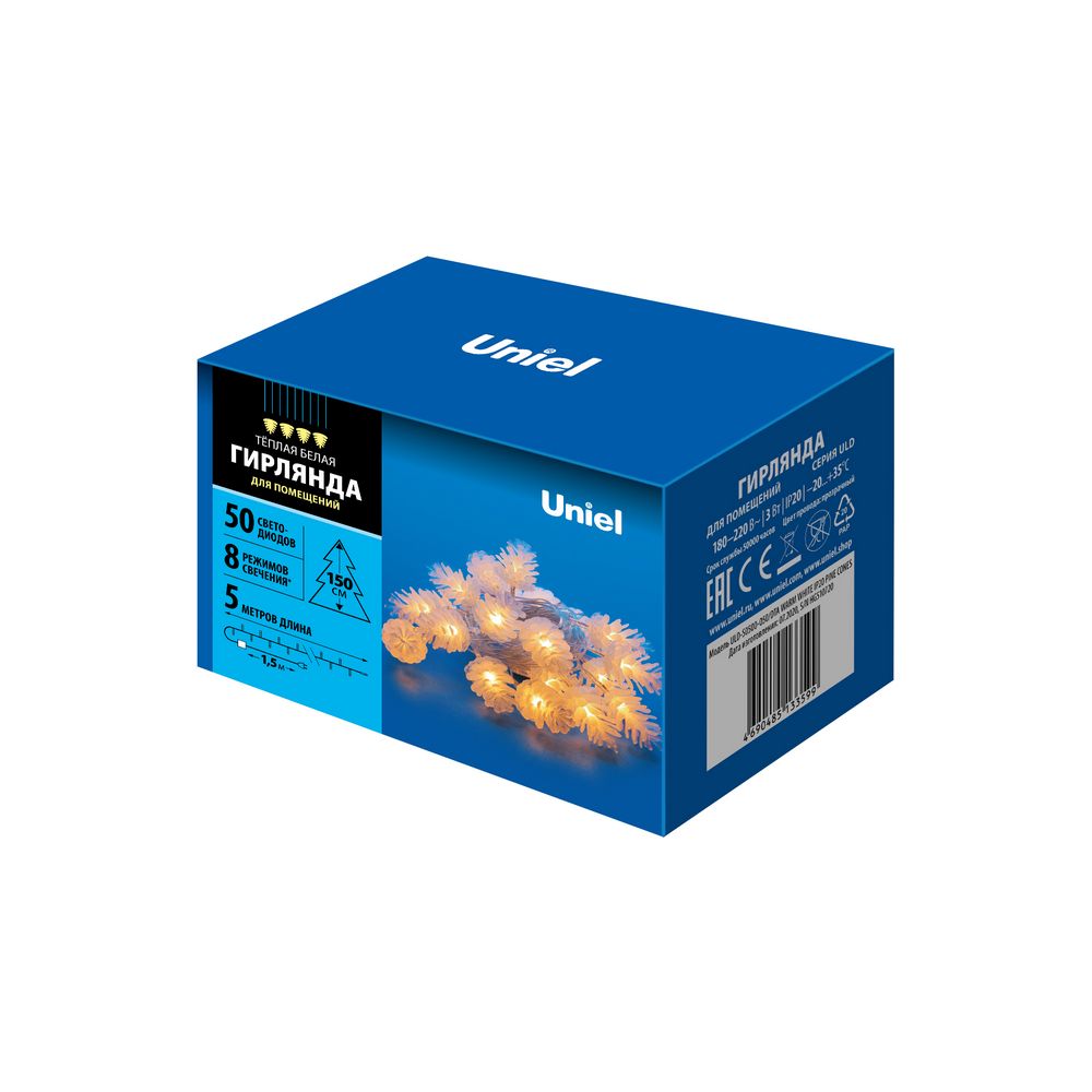/ Каталог / Светотехника / Иллюминация декоративная / Гирлянды / Гирлянда светодиодная «Шишки», 5м. 50 светодиодов. Теплый белый свет. Провод прозрачный. ULD-S0500-0
