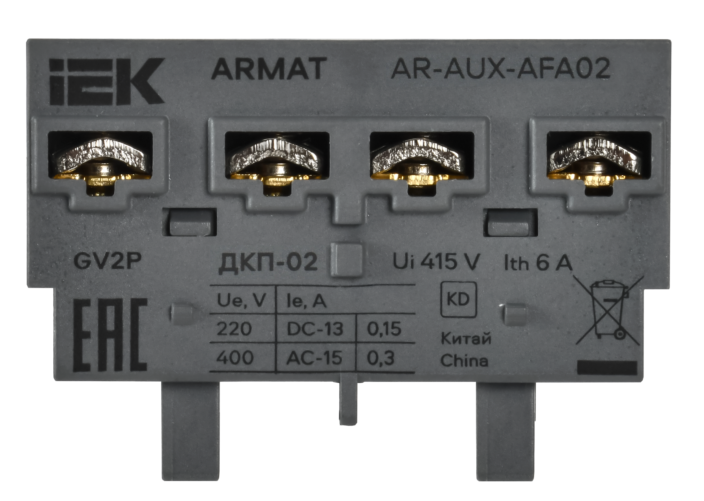 Дополнительный контакт для автоматического выключателя защиты двигателя серии ARMAT предназначен для коммутации цепей управления и сигнализации переменного тока при изменении коммутационного состояния главных контактов. Дополнительный контакт соответствует требованиям ТР ТС 004/2011