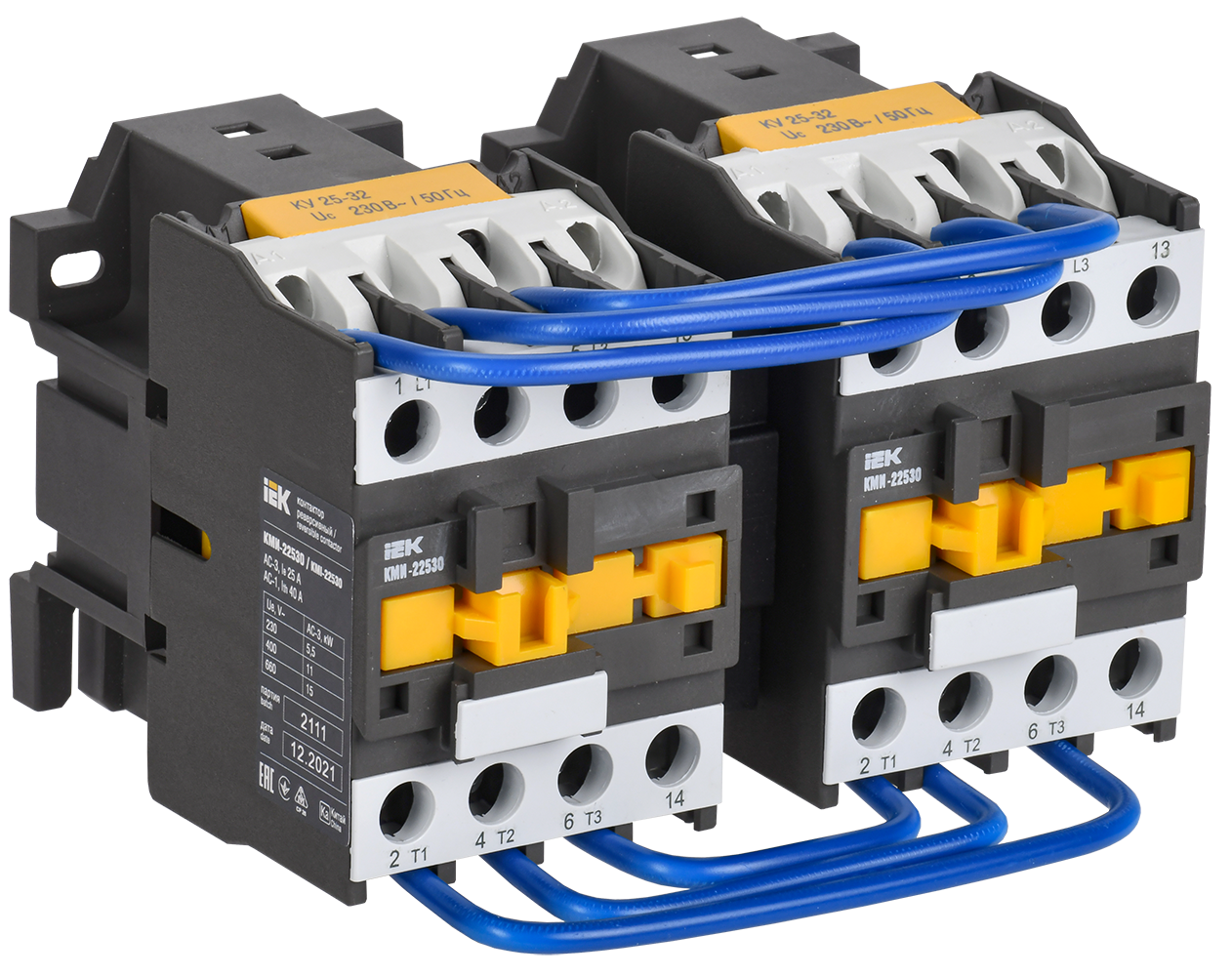 Контактор КМИ-22530 реверс 25А 230В/АС3 2NO IEK