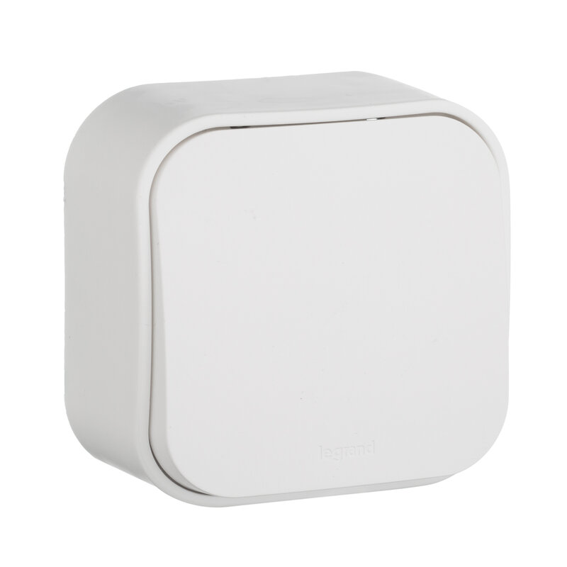 / Каталог / Электроустановочные изделия / Розетки и выключатели / Legrand Quteo / Переключатель 1-клавишный для открытой установки схема 6 10АХ белый QUTEO