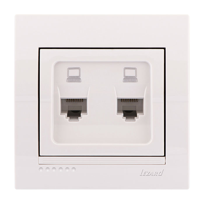 / Каталог / Электроустановочные изделия / Розетки и выключатели / Lezard Deriy / Розетка компьютерная двойная белый DERIY