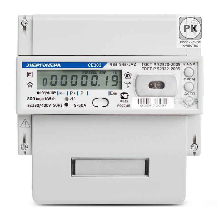 / Каталог / Счетчики электроэнергии / Многотарифные / Счетчик СЕ303 R33 543-JAZ запрограммир 3-х тариф. со справкой