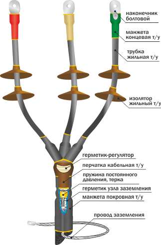 Обеспечивает выравнивание напряженности электрического поля и герметизацию корешка разделки кабеля за счет применения специального герметика-регулятора.