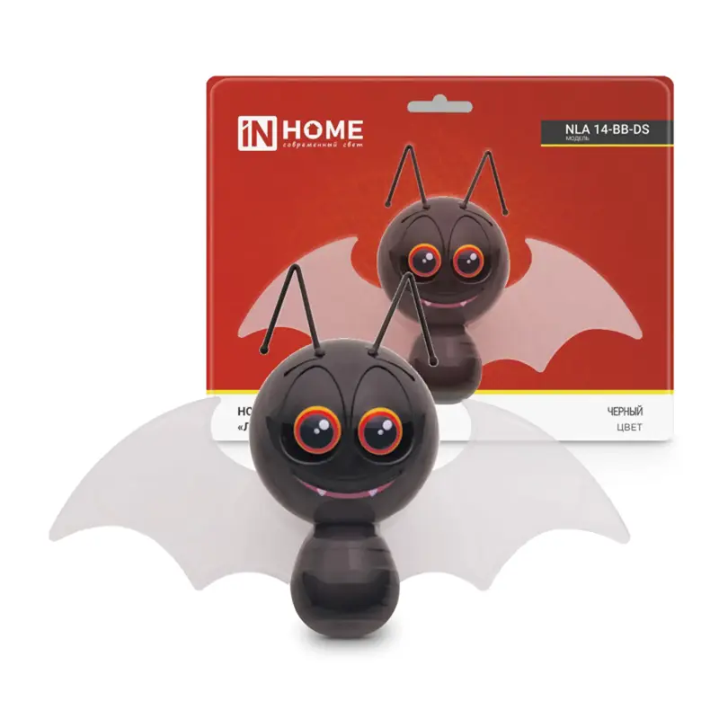 / Каталог / Светотехника / Интерьерное освещение / Ночники / Ночник светодиодный NLA 14-BB-DS ЛЕТУЧАЯ МЫШКА черная с датчиком освещения 230В IN HOME
