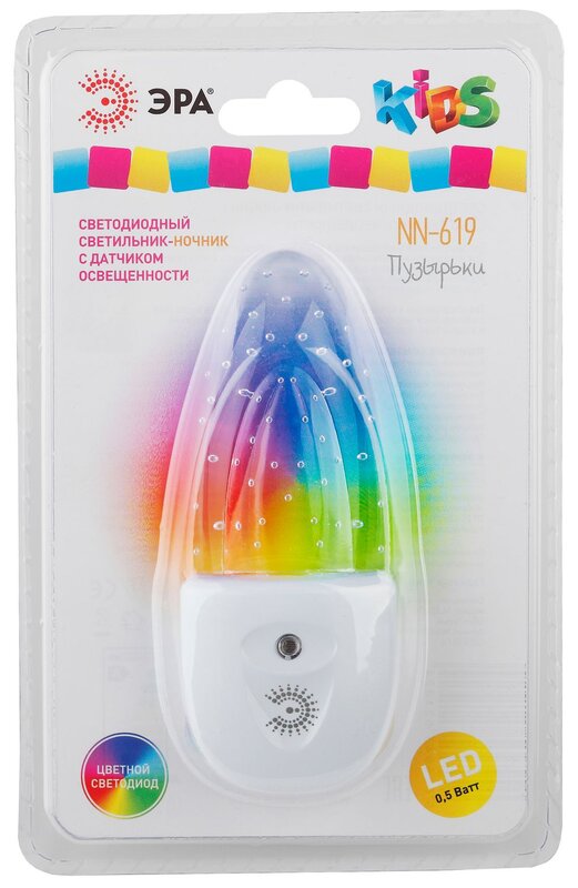 / Каталог / Светотехника / Интерьерное освещение / Ночники / Ночник - светильник светодиодный ЭРА NN-619-LS-W в розетку с датчиком освещенности белый
