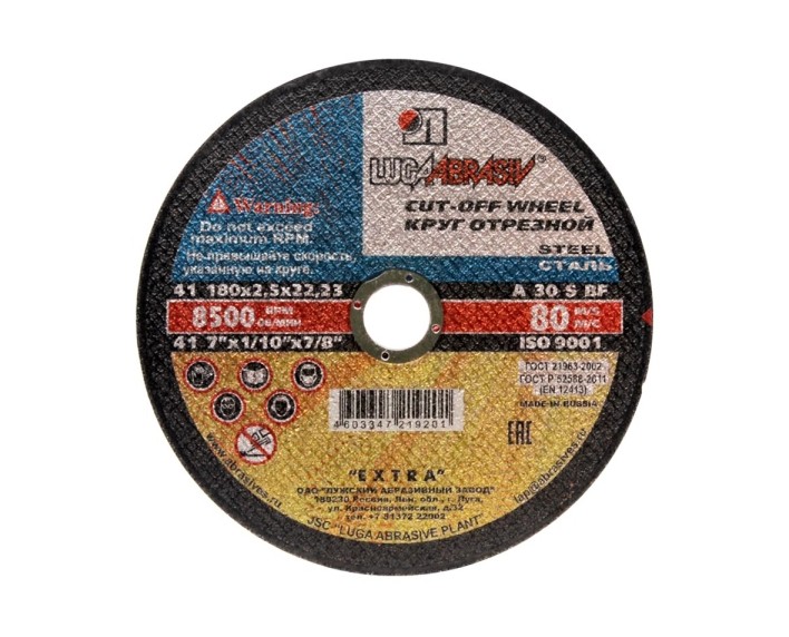 Круг отрезной 180x2.5x22 ЛУГА применяется для высокопроизводительной резки деталей и конструкций из различных марок стали. Особенно эффективны при резке тонкостенного профиля и листового металла. Специальный состав кругов, которые не содержат железа, серы и хлора, позволяет избежать “прижегов” разрезаемого материала и его загрязнения в процессе обработки. Не требует принудительного охлаждения водой, т. к. температура круга не больше 70-80°С. Круг самозатачивающийся, но при этом исходный диаметр равномерно уменьшается.