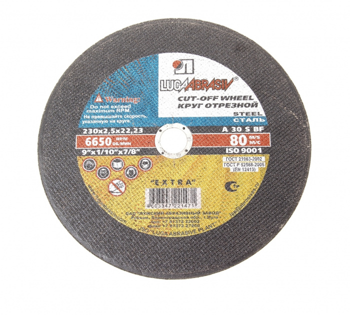Круг отрезной Луга-Абразив применяют для резки металла разных профилей, а также тонкостенных труб и листового полотна. Оснастка подходит в работе со сталью, чугуном, цветными металламии другими материалами.