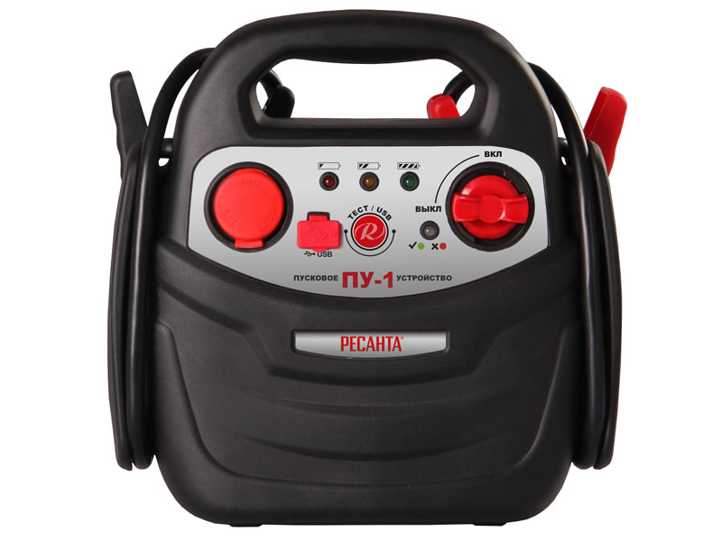 Пусковое устройство Ресанта ПУ-1совместимо с 12-вольтовой пусковой системой и применяется для запуска двигателя автомобиля. Данная модель оснащена встроенным аккумулятором, который не требует техобслуживания. Для удобства транспортировки пусковое устройство оснащено удобной ручкой.
