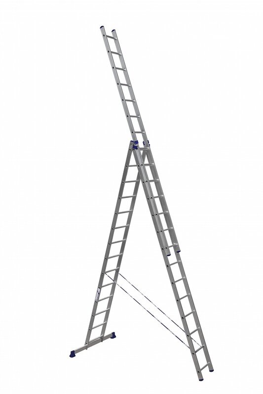 / Каталог / Инструменты / Лестницы / Алюминиевые лестницы / Лестница алюминиевая трехсекционная универсальная (3х14)