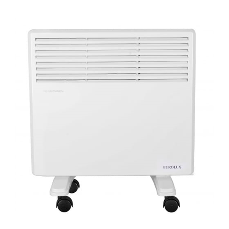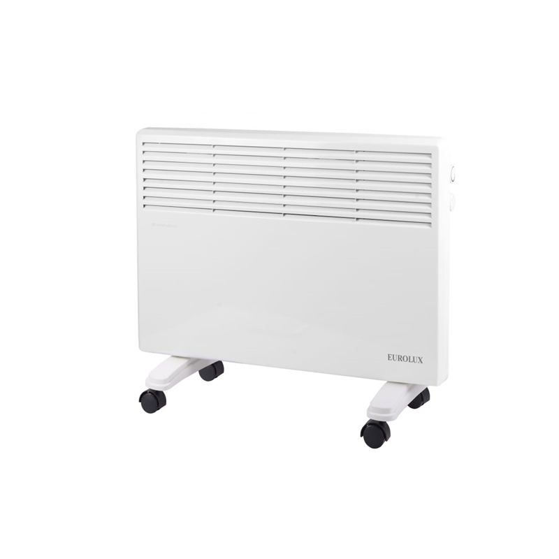 Конвектор ОК-EU-1000 67/4/24 может быть установлен на полу на специальные ножки или на стене на специальном креплении. Данный обогреватель имеет два режима мощности: 500 и 1000 Вт. Конвектор оснащен механическим термостатом для установки необходимой температуры обогрева. Опорные ножки, оснащенные колесами, упрощают перемещение обогревателя по помещению.