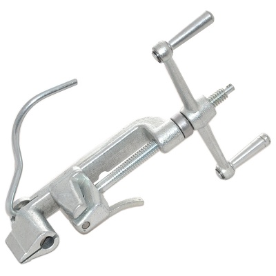 Используется для крепления различных элементов к столбовым опорам при помощи монтажной ленты. Устройство позволяет натянуть стальную ленту, загнуть ее и откусить излишек.