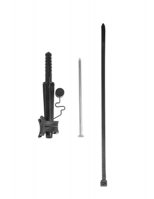 Дюбельная часть крепления устанавливается в предварительно просверленное отверстие диаметром 12 мм и закрепляется с помощью гвоздя, который поставляется вместе с креплением.