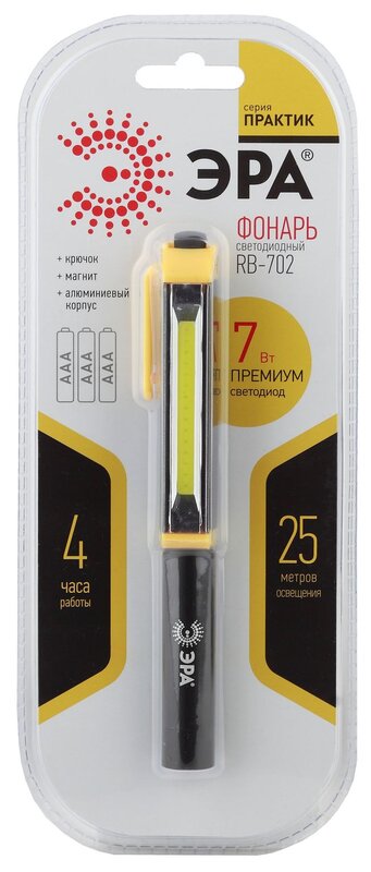/ Каталог / Светотехника / Фонари / Светодиодный фонарь ЭРА Рабочие Практик RB-702 ручной на батарейках алюминиевый магнит крючок