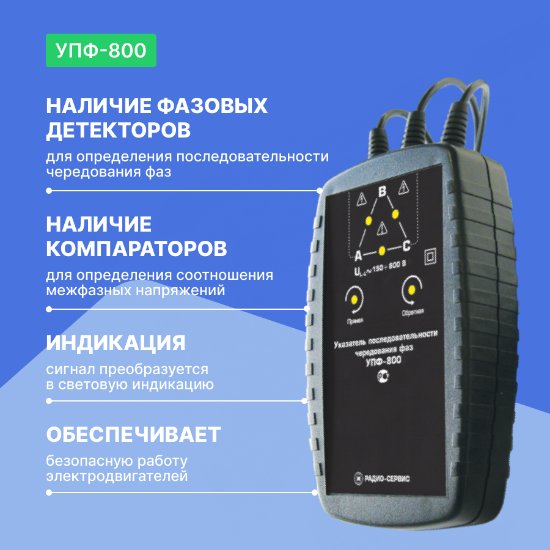 УПФ-800 необходим для того, чтобы специализированный работник смог определить последовательность чередования фаз и соотношение межфазных напряжений в трехфазной цепи.