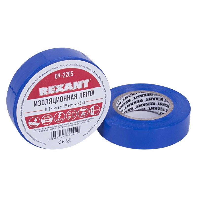 Изолента ПВХ 19ммх25м синяя REXANT 5шт/упак