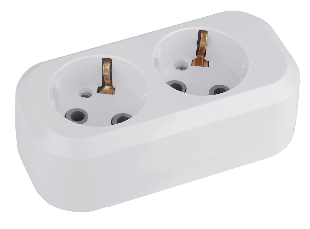 / Каталог / Электроустановочные изделия / Вилки, колодки, разветвители / Колодки / Колодка ЭРА KX-2e 2 розетки с зазeмлением белая