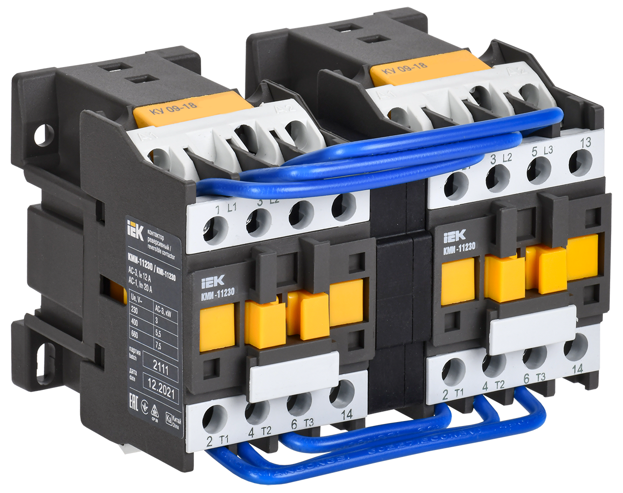 Контактор КМИ-11230 реверс 12А 400В/АС3 2NO IEK