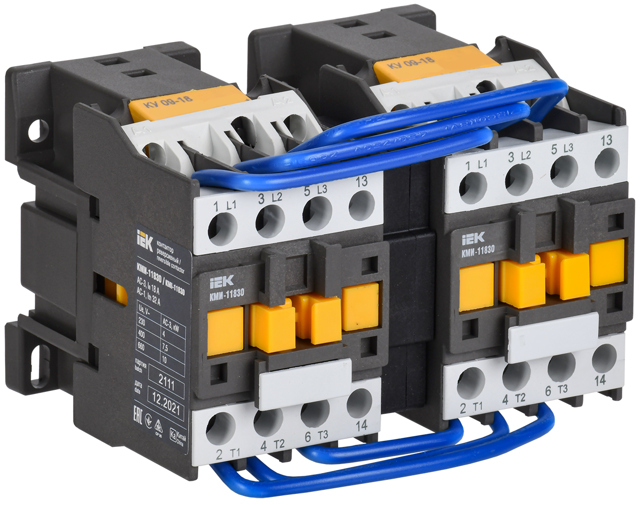 Контактор КМИ-11830 реверс 18А 400В/АС3 2NO IEK