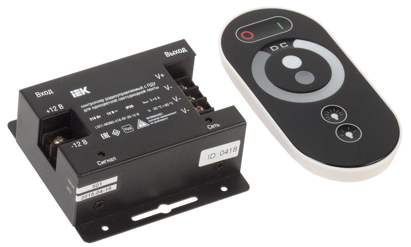 / Каталог / Источники света, лампы / Аксессуары к LED продукции / Контроллеры / Контроллер с ПДУ радио MONO 3 канала 12В 6А 216Вт черный IEK