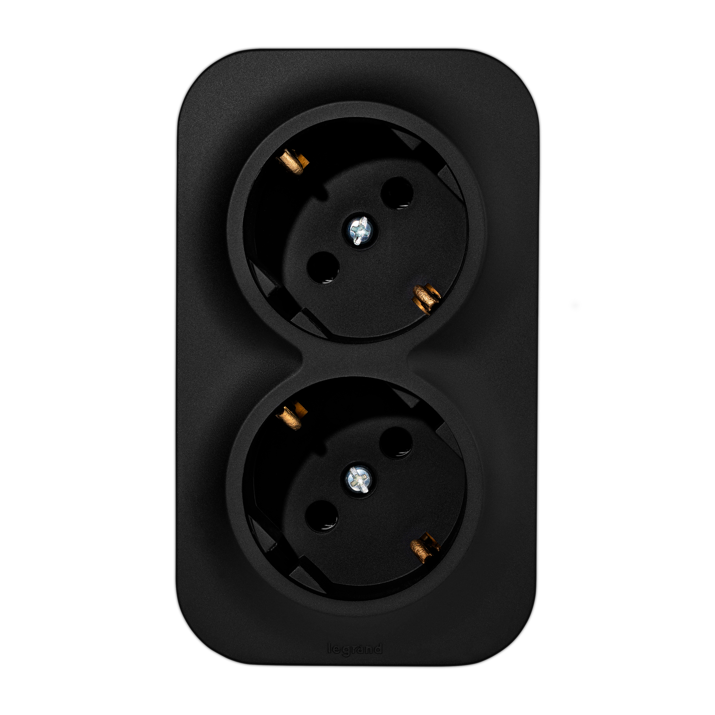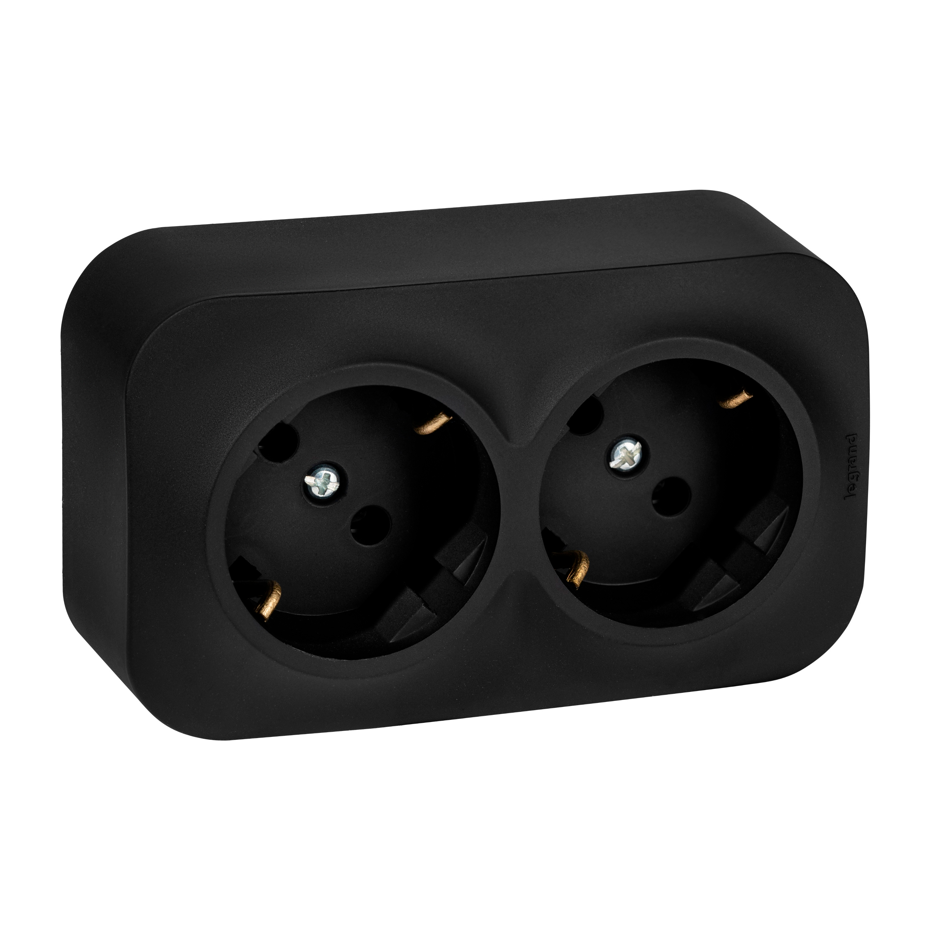 / Каталог / Электроустановочные изделия / Розетки и выключатели / Legrand Quteo / Розетка 2-местная для открытой установки с з/к без з/ш с предварительным подкл 16А черный мат QUTEO