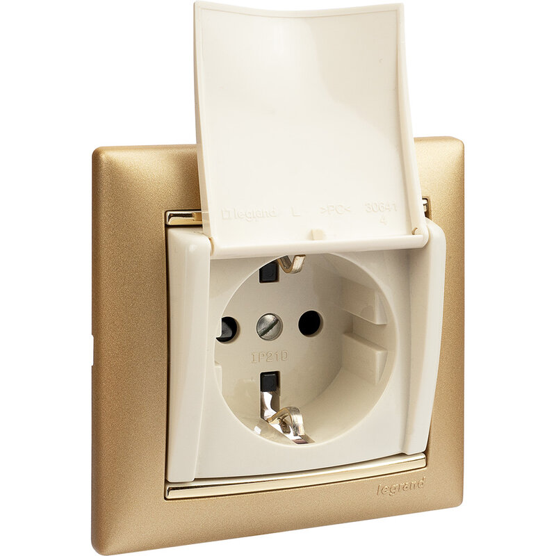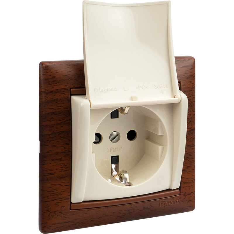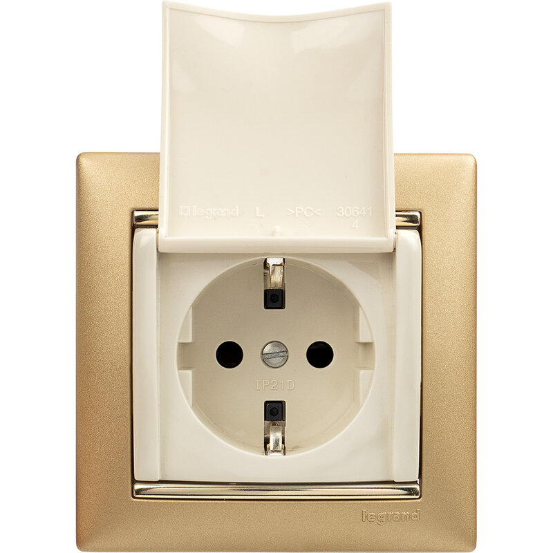 / Каталог / Электроустановочные изделия / Розетки и выключатели / Legrand Valena / Розетка 1-местная с заземлением с защитными шторками и крышкой 16А IP20 слоновая кость VALENA
