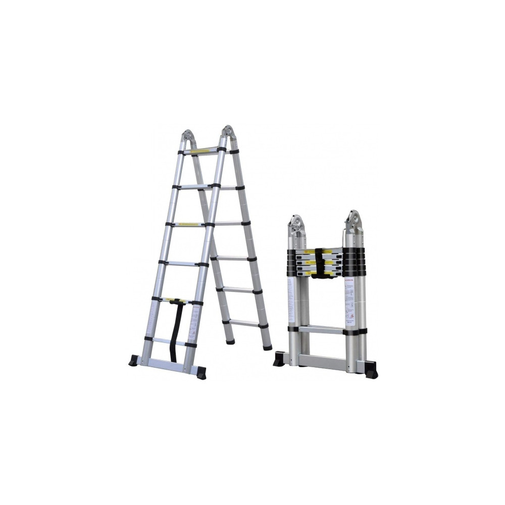Двухсторонняя телескопическая лестница с шарниром 1,9+1,9 м (6+6 ступ)