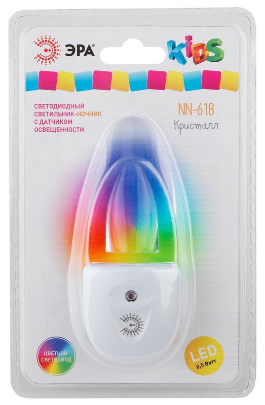 / Каталог / Светотехника / Интерьерное освещение / Ночники / Ночник - светильник светодиодный ЭРА NN-618-LS-W в розетку с датчиком освещенности белый
