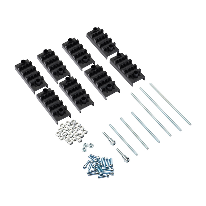 Система наборных шинодержателей позволяет создать требуемую конфигурацию шинодержателя в зависимости от требований проекта. Основанием служит прочный алюминиевый перфорированный профиль, на который насаживаются изоляторы для установки силовых шин ребром. Изоляторы имеют различное исполнение,обеспечивающее возможность установки шин толщиной 5 и 10 мм в количестве от 2-х до 4-х на одну фазу. В составе комплектов идёт необходимый крепёж: гайки, шпильки, винты.