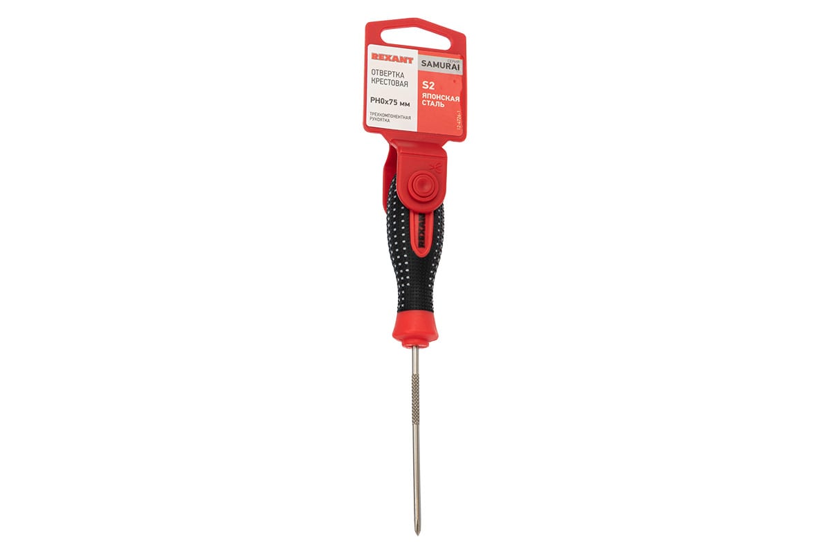 / Каталог / Инструменты / Ручной инструмент / Отвертки / Отвертка крестовая PH0х75мм, трехкомпонентная рукоятка, сталь S2 REXANT