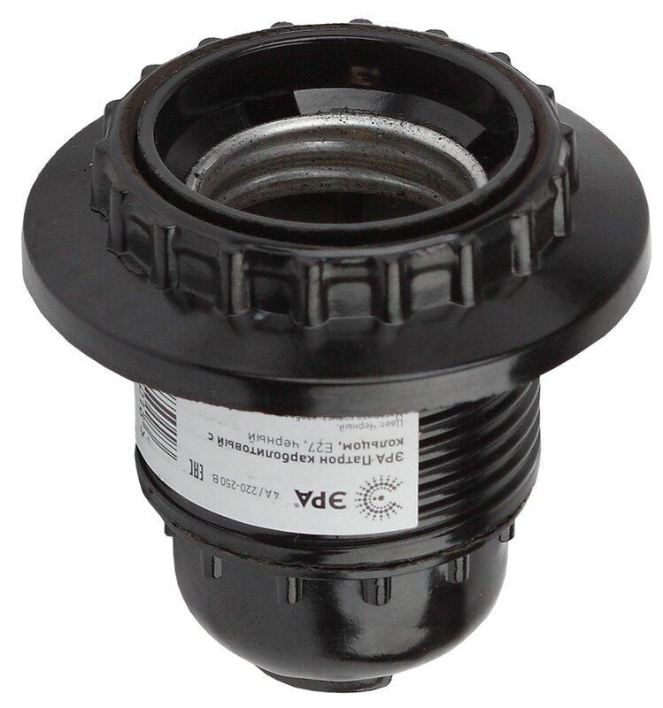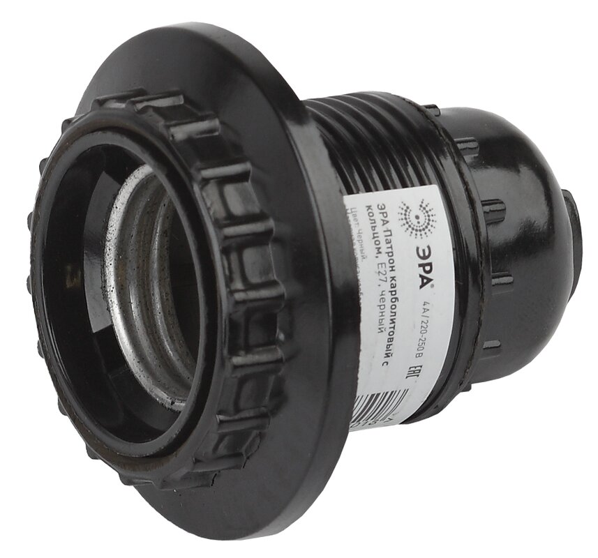 Патрон карболитовый с кольцом, Е27 черный ЭРА