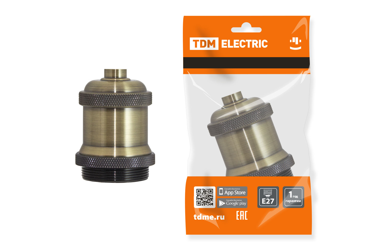 / Каталог / Светотехника / Управление освещением и комплектующие / Патроны и переходники / Патрон подвесной Е27, металлический "Лофт", бронза TDM