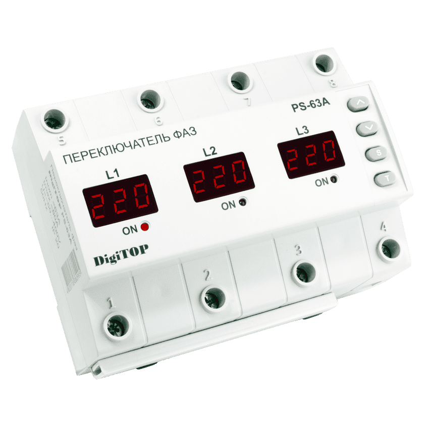 Приборы управляются микроконтроллером, который анализирует напряжение в трехфазной электросети и отображает действующие значения на цифровых индикаторах для каждой фазы. Коммутация выхода на нагрузку осуществляется электромагнитными реле.