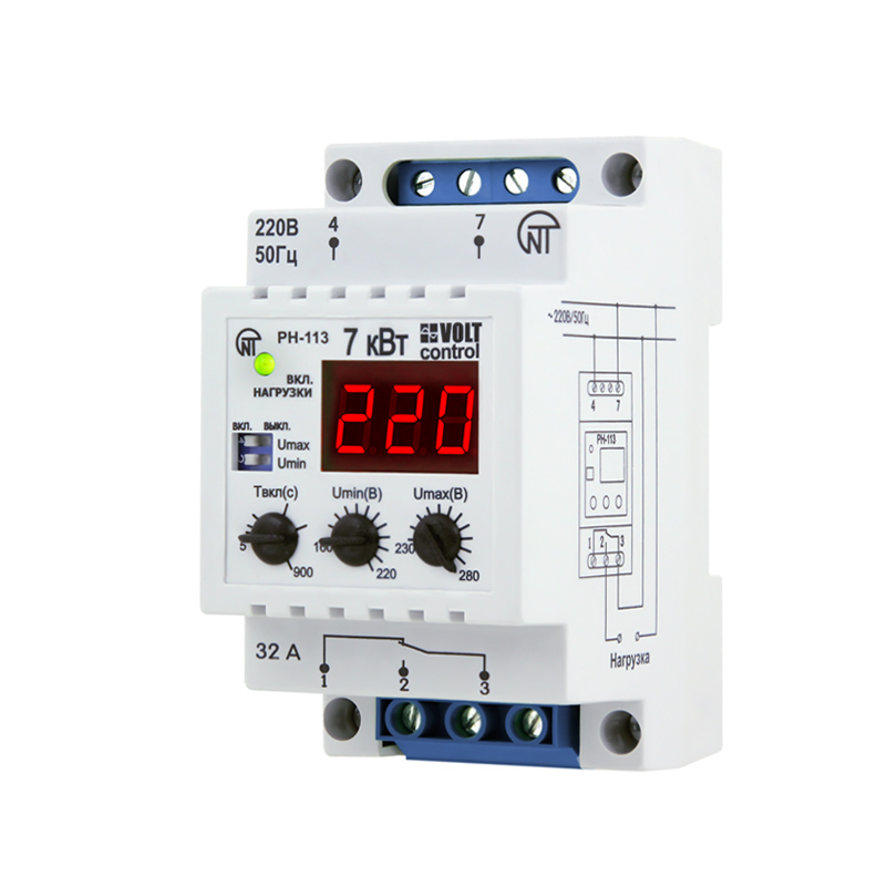 Реле напряжения РН-113 предназначено для отключения бытовой и промышленной однофазной нагрузки 220 В, 50 Гц при недопустимых колебаниях напряжения в сети с последующим автоматическим включением после восстановления параметров сети.