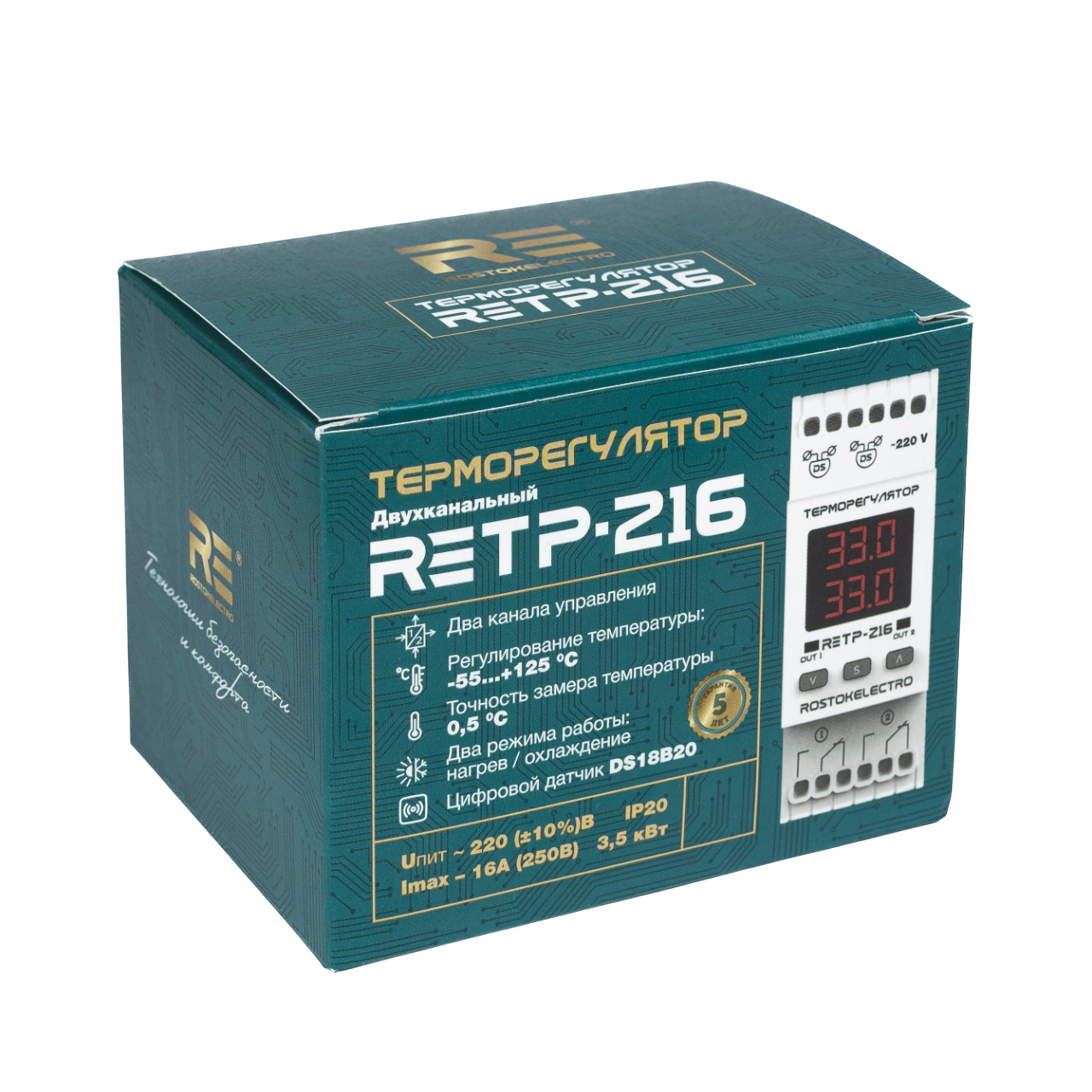 Двухканальный электронный регулятор температуры RE ТP-216 предназначен для поддержания заданной пользователем температуры по двум независимым каналам измерения и управления с отображением значений на встроенном цифровом светодиодном индикаторе.