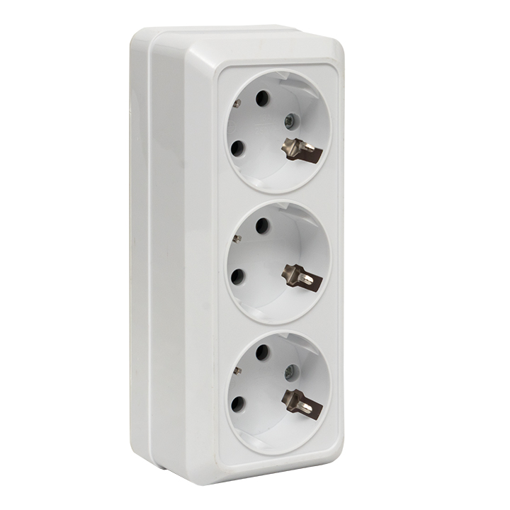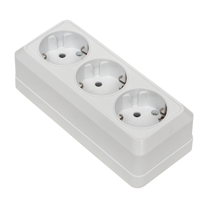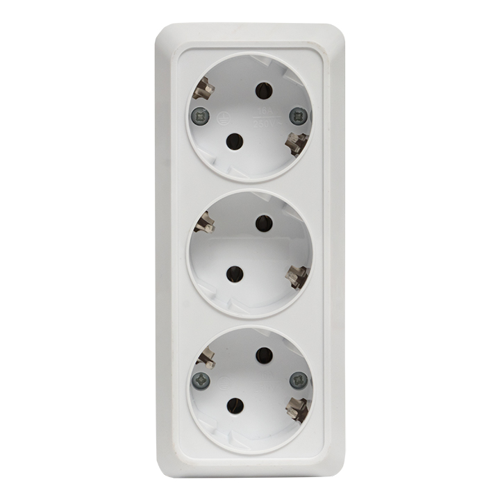 Рим Розетка 3-местная 16А с заземлением белая EKF