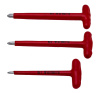 Стержень отвертки, выполненный из высококачественной хромованадиевой стали, покрыт специальным изоляционным материалом и оснащен оксидированным намагниченным наконечником.