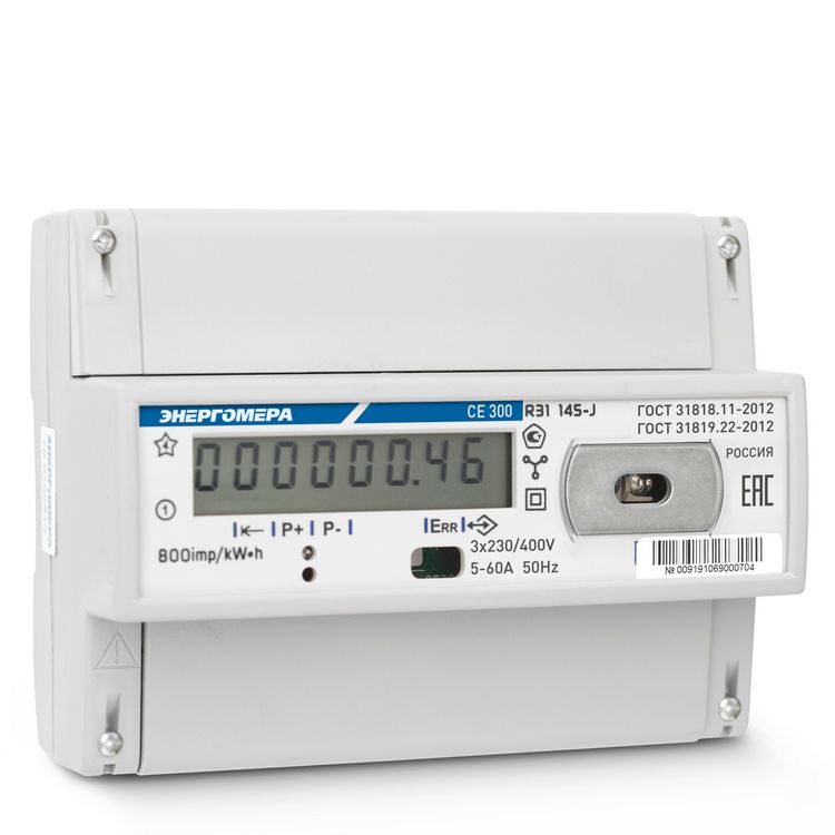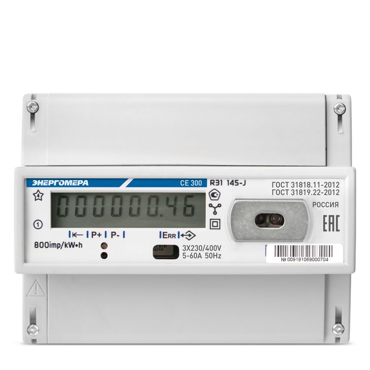 / Каталог / Счетчики электроэнергии / Счетчик СЕ300 R31 043-J 3-ф, однотарифный, 5(10), кл.точ. 0.5s, D, ЖКИ, оптопор