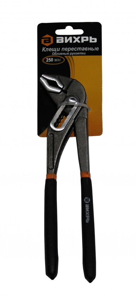 / Каталог / Инструменты / Ручной инструмент / Шарнирно-губцевый инструмент / Клещи переставные,250 мм.,обливные рукоятки Вихрь
