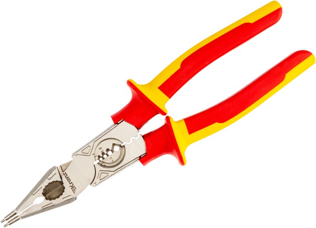 Многофункциональные диэлектрические плоскогубцы – это инструмент на все случаи жизни, включающий в себя: плоскогубцы, бокорезы, инструмент для зачистки кабеля, инструмент для обжима клемм.