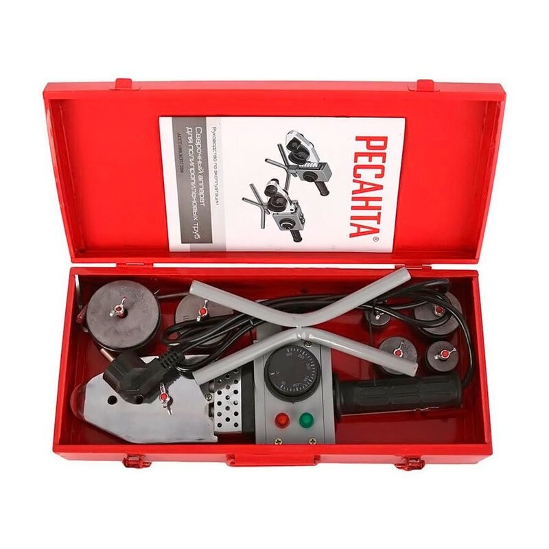 Аппарат для сварки ПВХ труб Ресанта АСПТ-1000 65/54 предназначен для надежного диффузного соединения полипропиленовых труб и фитингов диаметром от 20 до 63 мм.