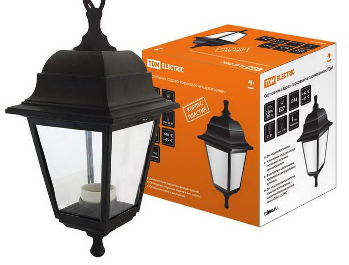 Светильник садово-парковый НСУ 04-60-001 четырехгранник, подвес, пластик, черный TDM