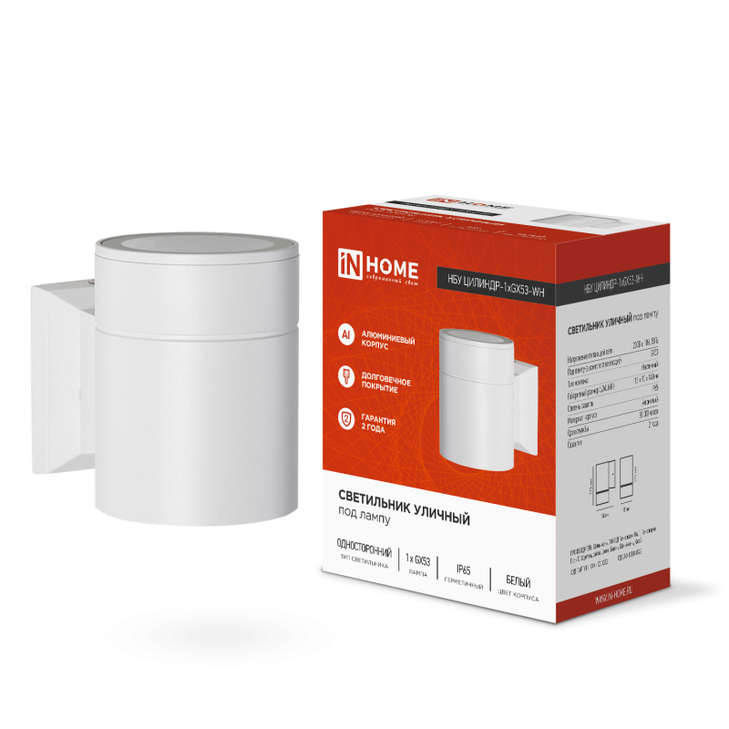 Оригинальные уличные светильники GX53-ЦИЛИНДР ТМ IN HOME предназначены для работы со светодиодными лампами GX53. Линейка представлена в трех цветах (белый, черный, серый) и двух вариантах исполнения (односторонний и двусторонний). Светильники предназначены для фасадной подсветки загородных домов, коттеджей, ресторанов, инсталляций. Благодаря современному дизайну, лаконичной форме и нестандартному световому эффекту, они станут идеальным решением для акцентного освещения общественных зданий и частных загородных коттеджей. Светильник имеет разборный корпус для установки светодиодной лампы. Корпус защищен специальной прокладкой, которая предотвращает проникновение влаги и защищает от запотевания.