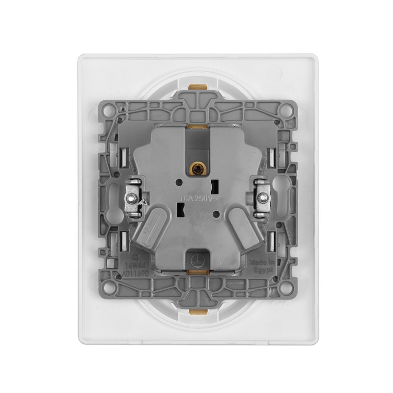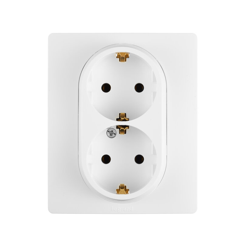 / Каталог / Электроустановочные изделия / Розетки и выключатели / Розетка 2-ая с/з, винт. клем. Белый Legrand Etika