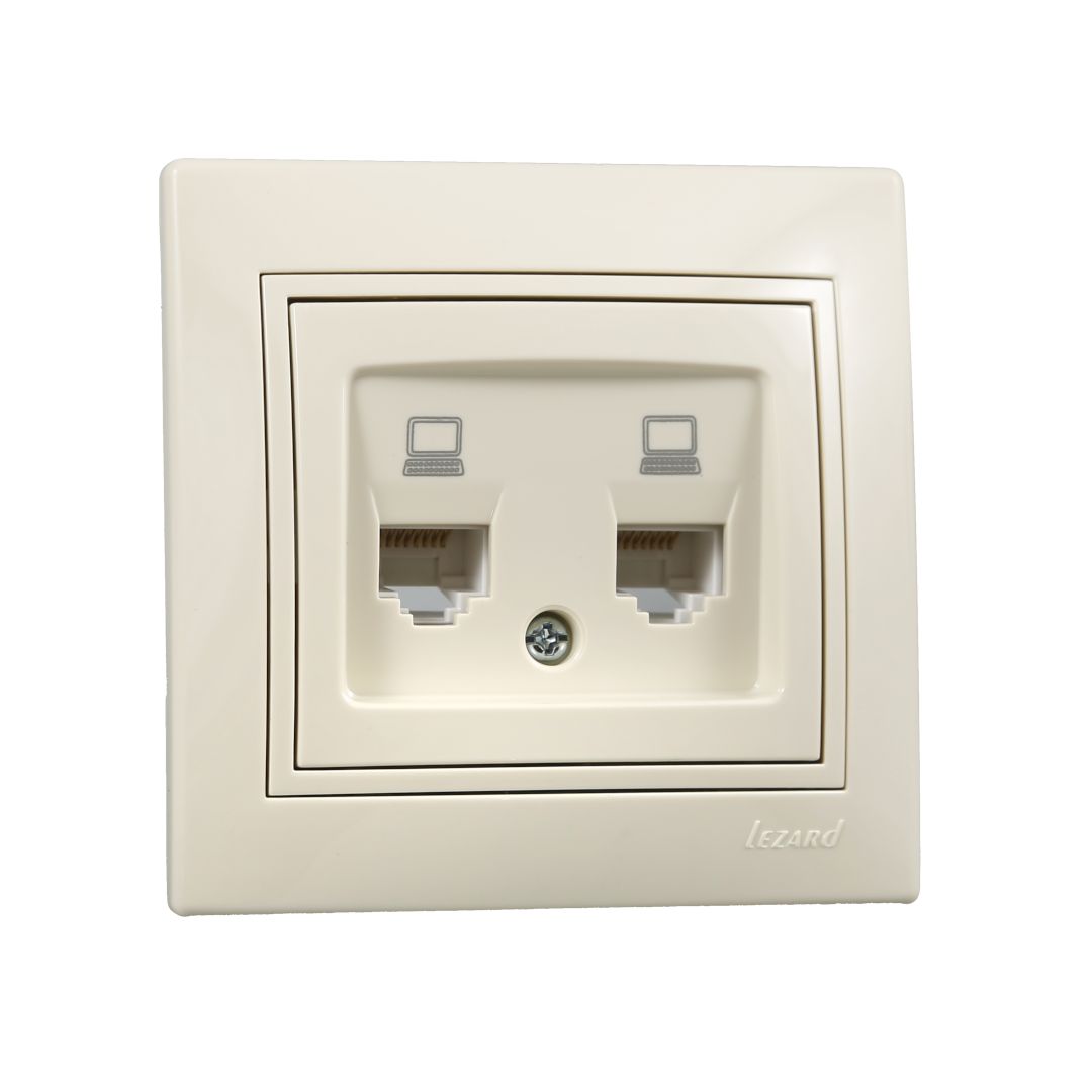 / Каталог / Электроустановочные изделия / Розетки и выключатели / Розетка компьютерная двойная кремовый MIRA