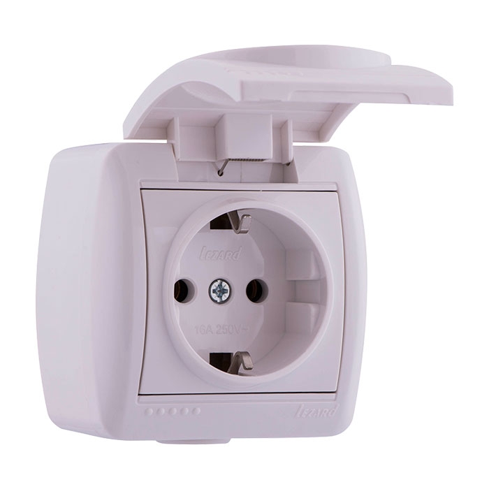 / Каталог / Электроустановочные изделия / Розетки и выключатели / Розетка с/з с крышкой керамика белый NATA